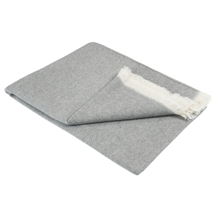 Feinste Handwerkskunst: ein fest gewebtes luxuriöses Kaschmir Plaid mit hellem Fransensaum.