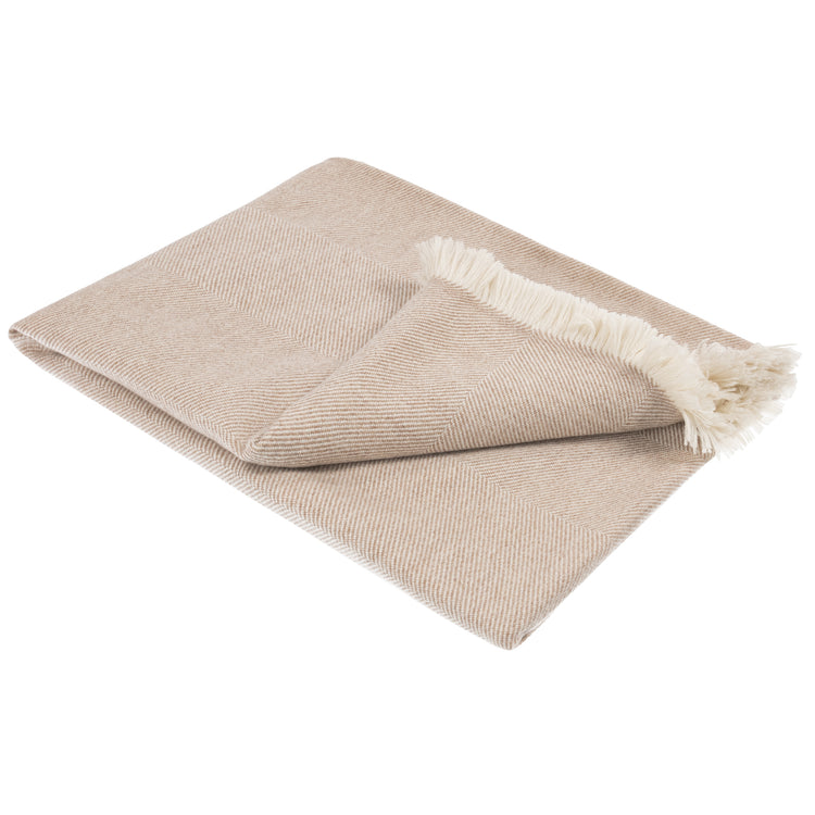 Feinste Handwerkskunst: ein fest gewebtes luxuriöses Kaschmir Plaid mit hellem Fransensaum.